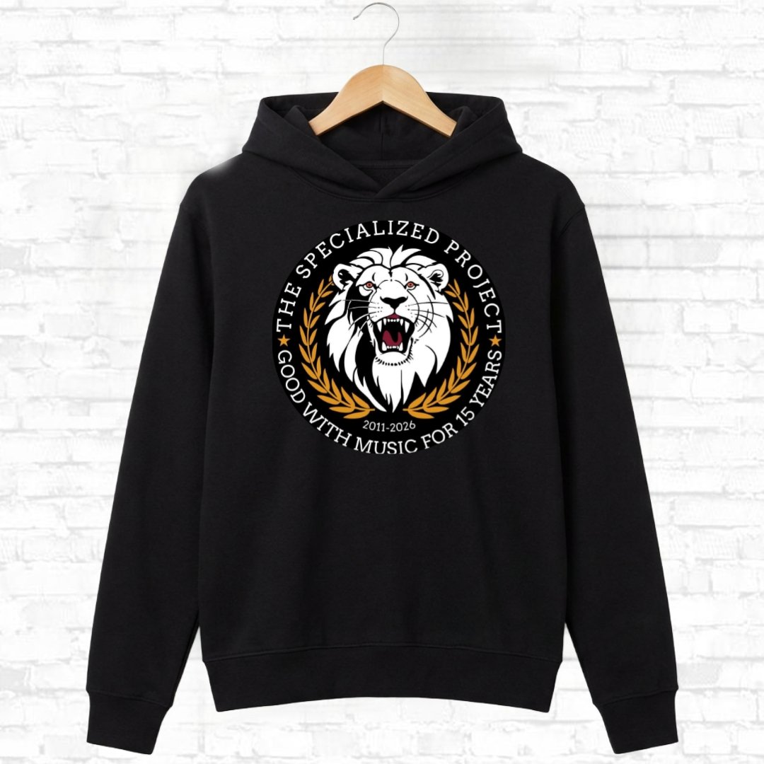 A hoodie with the NEW 2026 15th Anniversary logo